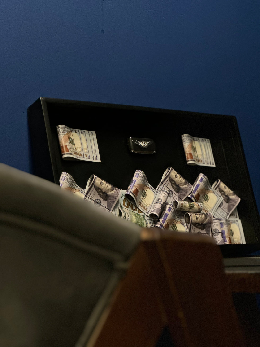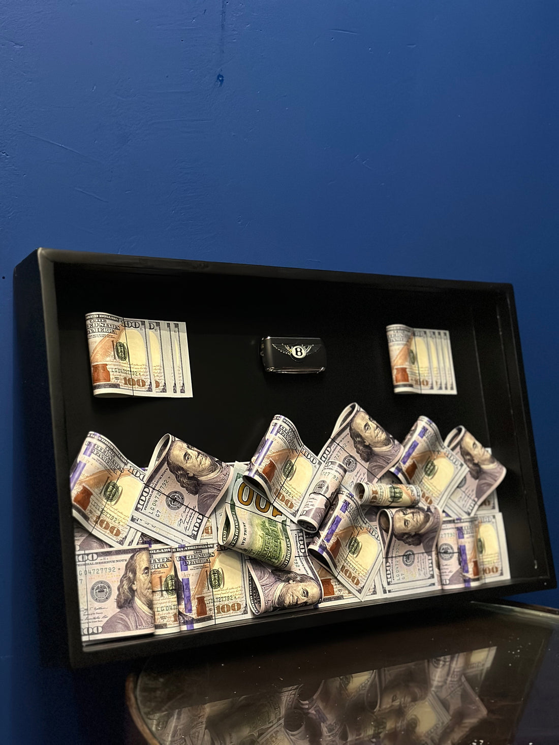 Luxury Bentley Key Frame — a bold statement of wealth and ambition. Featuring a premium Bentley key design layered over real dollar elements for a powerful, high-end look. Crafted to elevate any space with pure prestige.